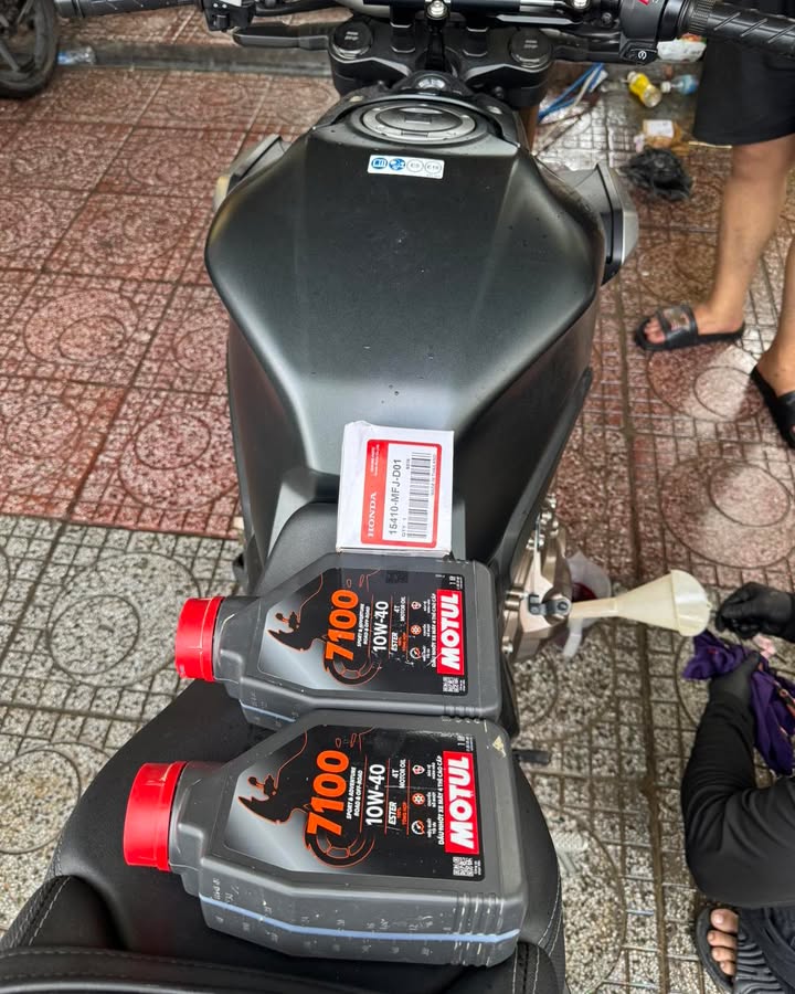 Thay dầu động cơ cho #Honda #CB650R 2023 và lọc dầu chính hãng 🤝